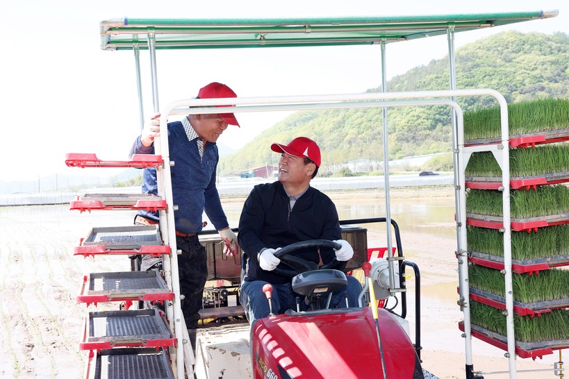 ▲ 상주쌀『미소진품』, 첫 모내기 실시(사진=상주시) |