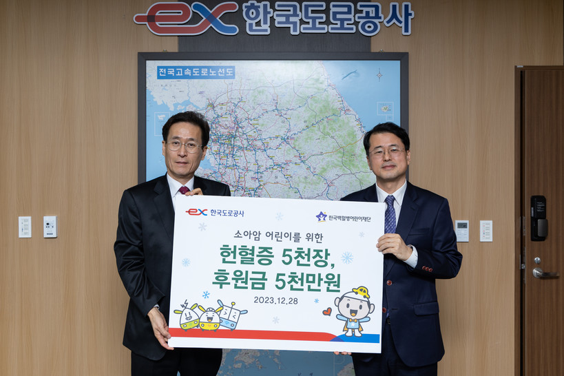 [일요주간=김영란 기자] 한국도로공사(사장 함진규)는 지난 28일(목) 한국백혈병어린이 재단에 소아암 어린이 환자들의 치료 지원을 위해 헌혈증 5천장과 치료비 5천만원을 전달했다고 밝혔다.