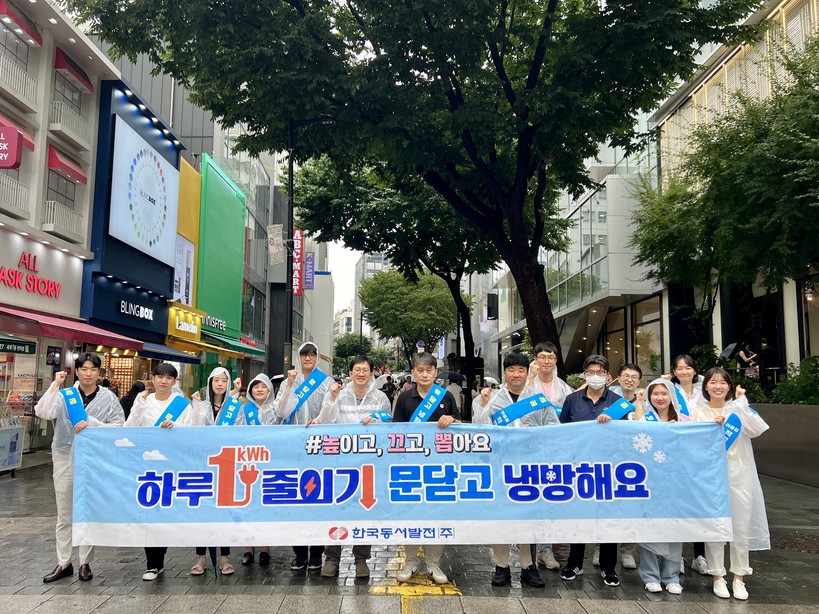 [일요주간=김영란 기자] 한국동서발전(주)(사장 김영문)는 한국프렌차이즈산업협회·이니스프리와 함께 민·관 합동으로 에너지절약 운동의 일환인 ‘하루 1kwh(킬로와트시) 줄이기-상가 문닫고 냉방하기’거리 캠페인을 서울 명동 상가 일대에서 펼쳤다.
