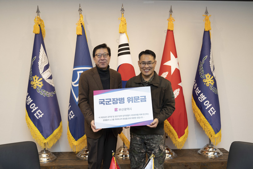 한편, 부산시는 1978년부터 국가보훈부에서 주관하는 ‘국군장병 위문 성금 모금’에 매년 동참하고 있다. 올해는 지난 11월부터 한 달 동안 시 본청을 비롯한 사업소, 자치구.군, 지방 공기업의 임직원 등이 참여해 총 2천850만6천 원의 성금을 모았다.