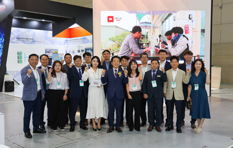 ▲ 'KEET 2023'에 참가한 한전KDN 관계자들과 김장현 사장(앞줄 한가운데) (사진=KDN) |