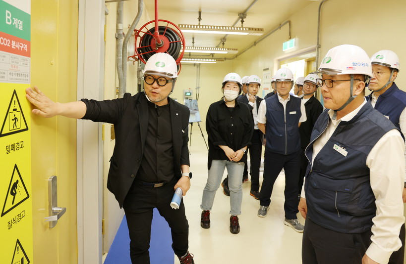 ▲ 한수원 황주호 사장이 11일 넛지효과 기반 안전디자인이 적용된 한빛원자력본부를 방문하여 현장 안전경영을 시행했다.(사진=한수원) |