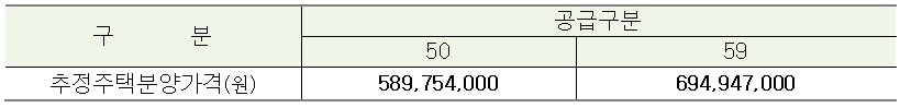 ▲ 위례지구 A1-14블록 특별공급 추정 주택분양가격 (표=SH공사) |