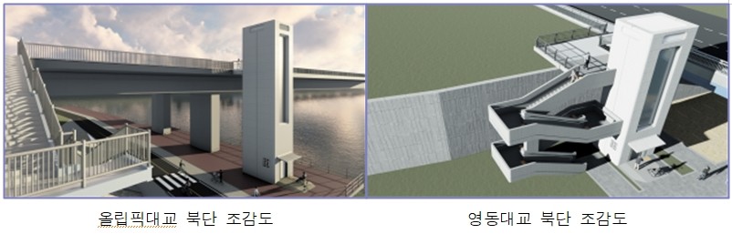 시는 한강 다리와 한강공원의 연결 접근성이 떨어지는 구역, 높은 계단으로 보행 약자가 이용하기 불편한 구간 등에 승강기를 설치해 접근성과 함께 한강공원 남쪽과 북쪽의 연결성을 높일 계획이다.