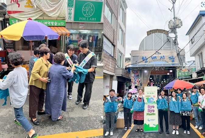 ▲ 보령전통시장인 한내시장에서 주민들에게 장바구니 증정 행사를 시행했다. (사진=중부발전) |
