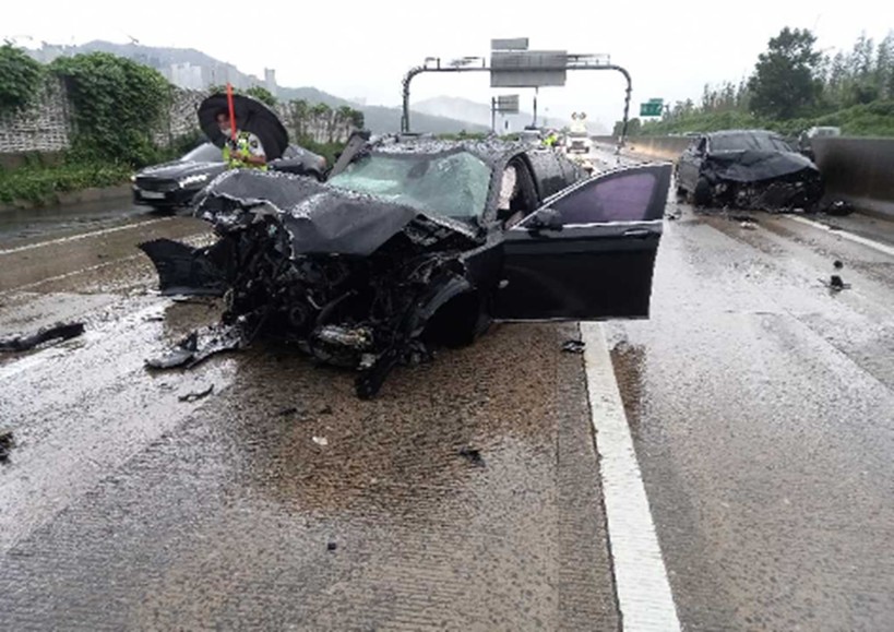 ▲ ‘22년 7월 24일 06:30분경 경부고속도로 양산분기점 인근에서 승용차가 전방주시태만으로 선행사고차량을 추돌하고, 후속하던 차량에 재차 추돌되면서 승용차 운전자가 사망하는 사고(사진=도로공사) |