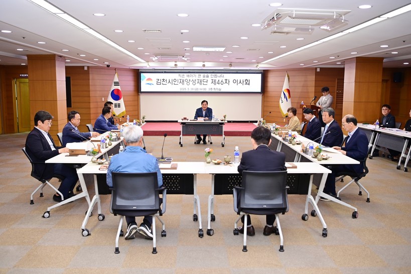 [일요주간=최부건] 김천시인재양성재단(이사장 배낙호)은 지난 5월 28일 시청 2층 회의실에서 제46차 이사회를 개최했다.