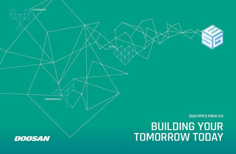▲두산 2022 ESG보고서 표지 이미지. (사진=두산) |