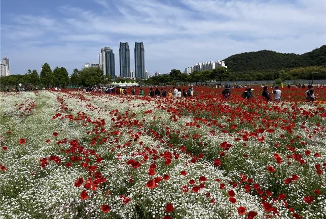 활짝 핀 꽃양귀비, 작약, 수레국화, 안개초, 금영화 등 6,000만 송이 봄꽃이 관람객을 맞이한다.