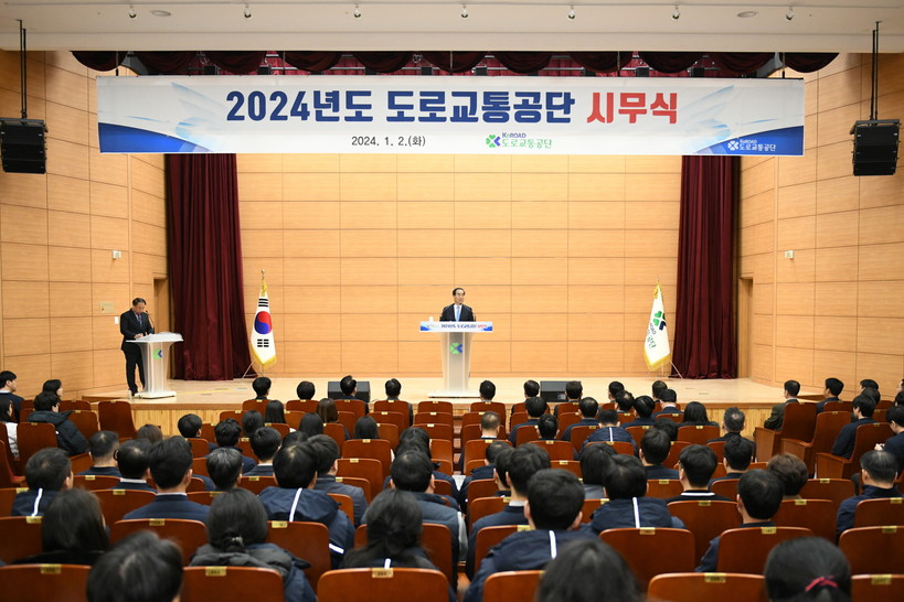 [일요주간=김영란 기자] 도로교통공단(이사장 이주민)은 1월 2일(화) 강원 원주시 본부 3층 대강당에서 2024년 갑진년(甲辰年) 시무식을 개최하고 새해 업무를 시작했다.