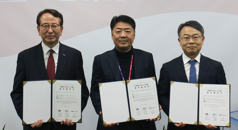 | ▲ 업무협약_좌측부터 BPA 강준석 사장, 오은택 남구청장, 이정행BPT 대표 (사진=부산항만공사) |