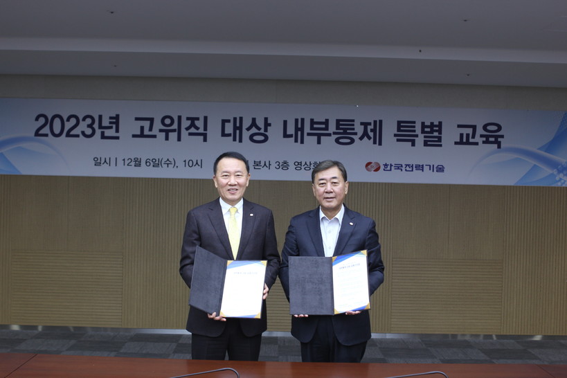 [일요주간=김영란 기자] 한국전력기술(사장 김성암)은 지난 6일, 김천 본사에서 경영진과 부서장급 고위직 직원이 참석한 가운데 ‘사장-상임감사 내부통제 강화 공동선언식’을 개최했다.