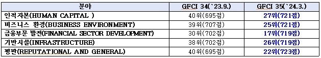 - '아시아 태평양지역 금융도시' 9위, '향후 중요성이 높아질 금융중심지 15대 도시' 7위 선정돼