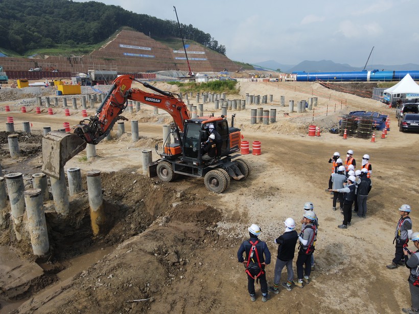 스마트 굴착장비 현장 도입 시연회는 건설현장의 안전성과 효율성을 높이기 위해 기존의 건설 공정에 드론·사물인터넷(IoT)·4D 등 4차 산업기술을 융합한 동서발전 ‘중장기 스마트 건설기술 도입계획’의 일환으로 진행되었다.