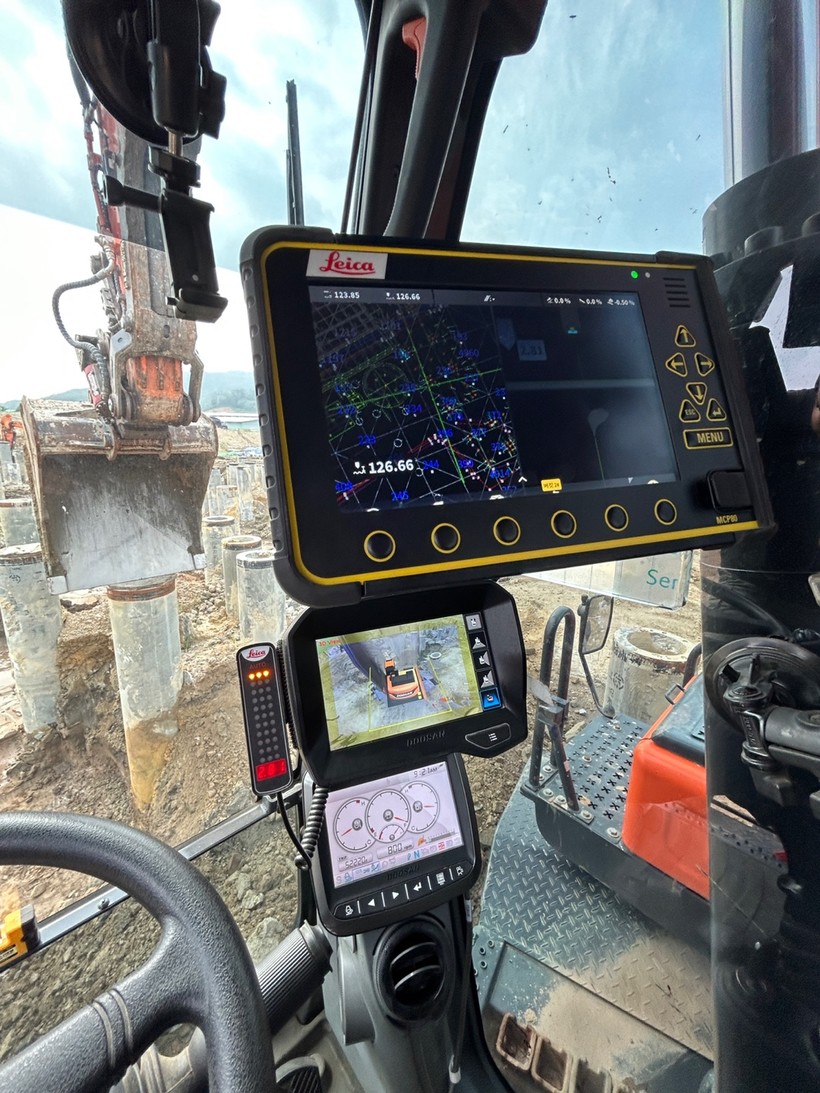 동서발전은 스마트 굴착기에 탑재된 GPS, 각도·버켓 센서, 3D 모니터 등 건설기계 자율화 기술인 머신가이던스(Machine Guidance) 기능을 통해 현장 도면, 위치, 깊이 등을 모니터로 실시간 확인하며 조종한다.