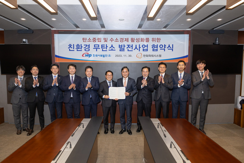 서부발전은 11월 30일(목) 경기 성남 한화에어로스페이스 R&D센터에서 한화파워시스템과 ‘친환경 무탄소 발전사업 협약’을 체결했다. 암모니아 연소 가스터빈 등 무탄소 발전사업 개발을 위한 협력 관계를 더욱 다지기 위해서다.