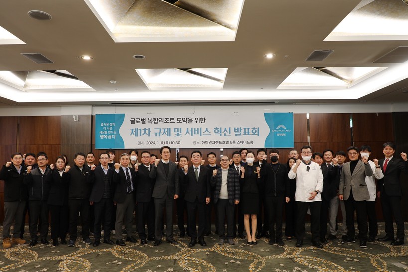 ▲ 글로벌 복합리조트 도약을 위한 제1차 규제 및 서비스 혁신 발표회 단체 촬영(사진=강원랜드) |