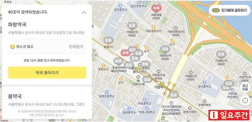 ▲ 실시간 마스크 지도 서비스 똑닥 (이미지편집=일요주간) |