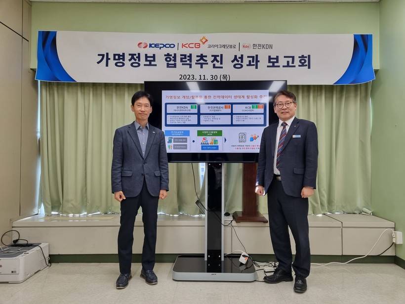 [일요주간=김영란 기자] 한국전력(대표이사 사장 김동철)은 11월 30일(목) 한전 아트센터에서 데이터 이용기관인 KCB(코리아크레딧뷰로)와 한전KDN이 참석한 가운데 가명정보 협력추진 성과 보고회를 개최했다.