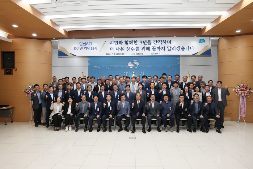 [일요주간=최부건 기자] 상주시(시장 강영석)는 7월 1일(화) 시청 대회의실에서 상반기 시정발전유공자와 직원 등 100여 명이 참석한 가운데 민선자치8기 3주년 기념식을 개최하였다.