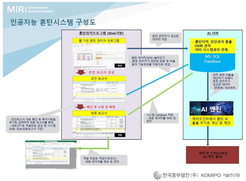 ▲ 혼탄최적프로그램 및 AI서버를 기반으로 한 인공지능 혼탄시스템 구성도(이미지=중부발전) |