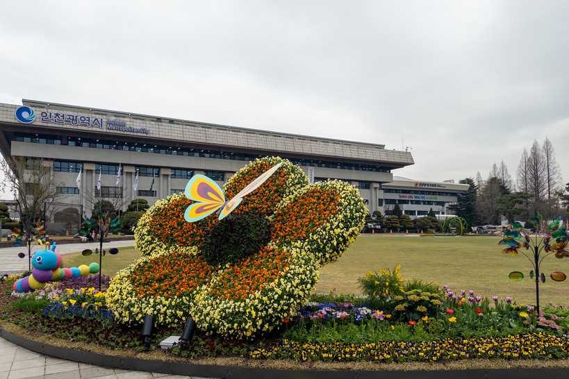 애뜰광장에 조성한 사계절 정원은 시민이 행복한 ‘세계 초일류도시 인천’의 이미지를 전달하기 위해 ‘시민들에게 희망을’이라는 메시지를 제시하고 자연과 문화공간, 사람이 조화를 이루며 공존하는 살기 좋은 인천을 상징화했다.