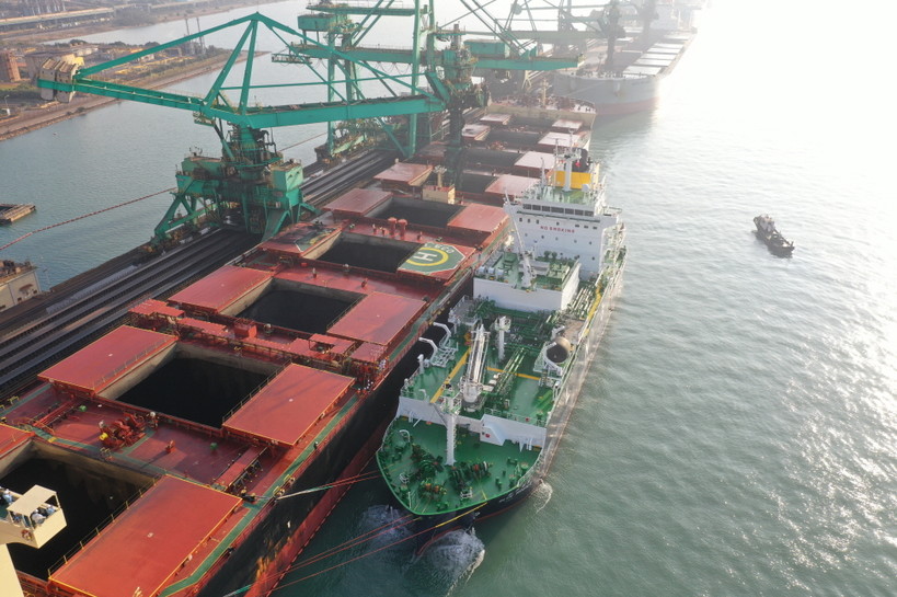 ▲ 한국가스공사는 자회사인 한국엘엔지벙커링(주)이 국산 화물창(KC-2) 기술을 적용한 LNG벙커링 전용선 ‘블루웨일호’를 활용해 10월 28일 국내 최초로 ‘LNG 벙커링 동시작업(SIMOPS, Simultaneous Operations)’을 성공적으로 수행했다고 밝혔다. (사진=한국가스공사) |