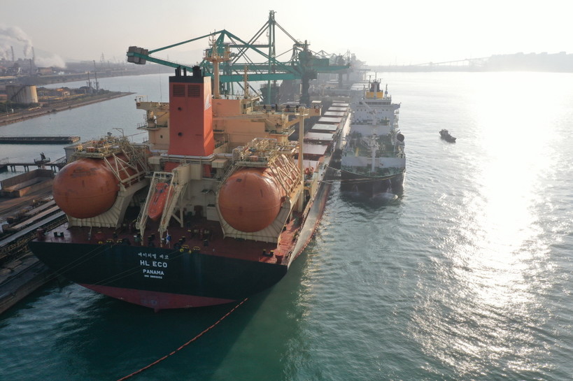 한국엘엔지벙커링㈜은 통영 생산기지에서 LNG 벙커링 전용선인 ‘블루웨일호’에 LNG를 싣고 이동해 광양제철소 원료부두에서 하역 중이던 HL-에코호에 약 1천 톤의 LNG를 STS(Ship to Ship, 선박 對 선박) 방식으로 공급했다.