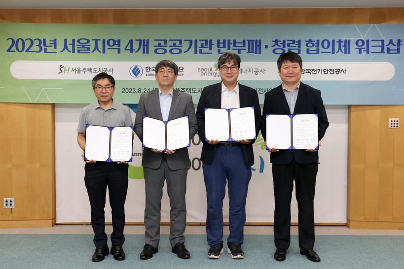 SH공사는 서울에너지공사, 한국에너지공단 서울지역본부, 한국전기안전공사 서울지역본부와 함께 24일 ‘2023년 서울지역 4개 공공기관 반부패·청렴 협의체 연수회(워크숍)’를 열고, 반부패·청렴 문화 정착을 위해 노력할 것을 약속했다고 30일 밝혔다.