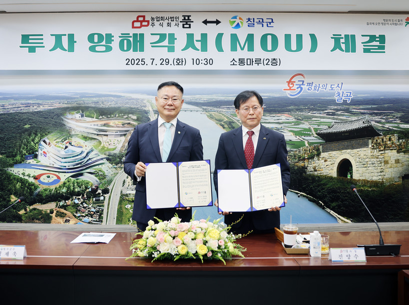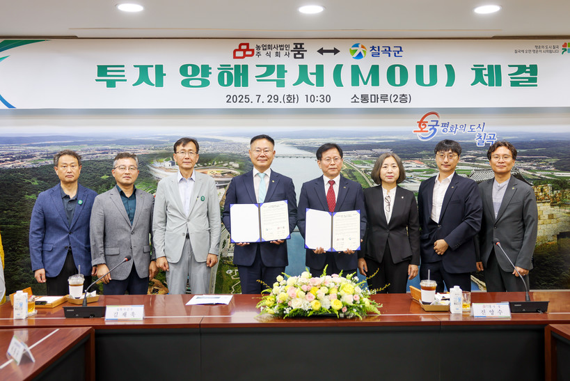 | ▲ 칠곡군·농업회사법인 품 주식회사 투자 양해각서(MOU) 체결(사진=칠곡군) |