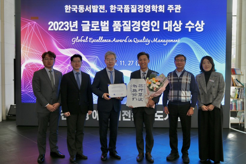 [일요주간=김영란 기자] 한국동서발전(주)(사장 김영문)는 김영문 동서발전 사장이 여수세계박람회장에서 개최된 2023년도 (사)한국품질경영학회 추계 학술대회 품질상 시상식에서 ‘글로벌품질경영인대상(Global Excellence Award in Quality Management)’을 받았다고 27일(월) 밝혔다.