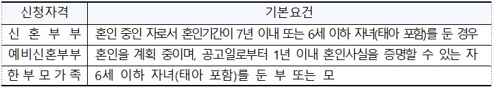 ▲ 신혼희망타운 신청자격별 기본요건 (표=LH) |
