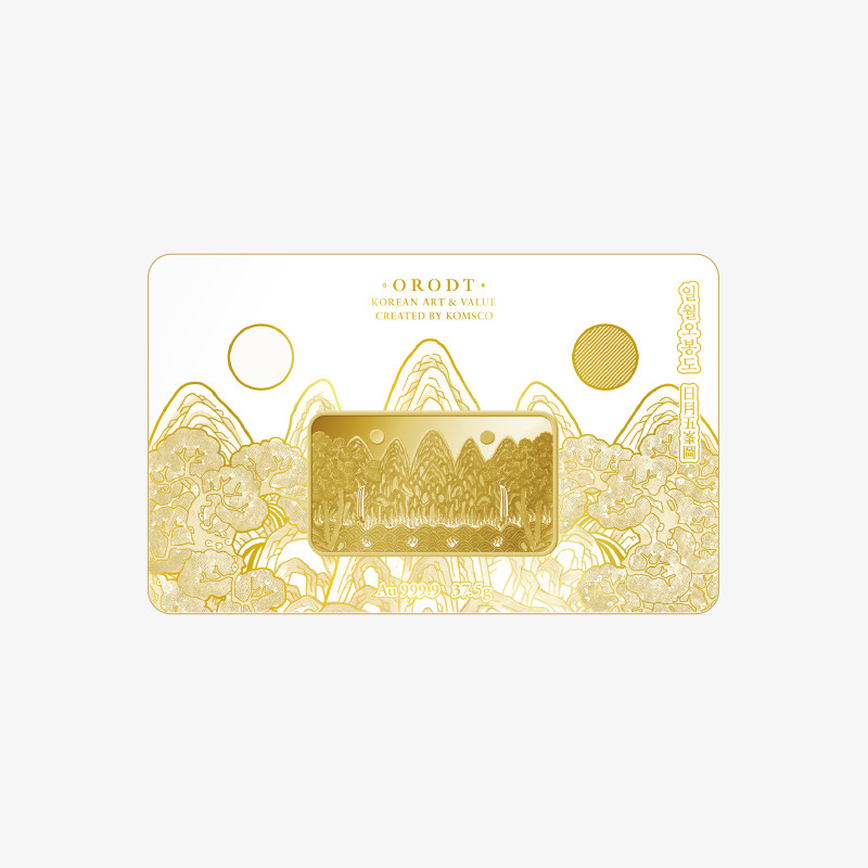 ‘일월오봉도’ 카드형 골드는 37.5g(순도 99.99%, 중량 37.5g), 3.75g(순도 99.99%, 중량 3.75g) 2종 출시되며 판매가격(부가세 포함)은 37.5g 409만원, 3.75g 45만5천원으로 한정수량 없이 상시 판매된다.