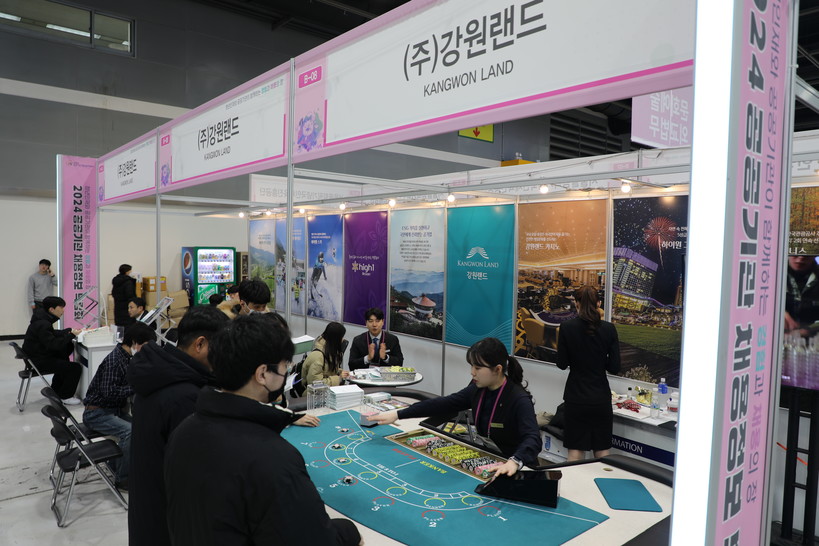 특히, 강원랜드 홍보부스에서는 테이블게임 체험존을 운영해 ‘카지노의 꽃’ 딜러 직무 지원을 희망하는 참가자들의 눈길을 끌었다.