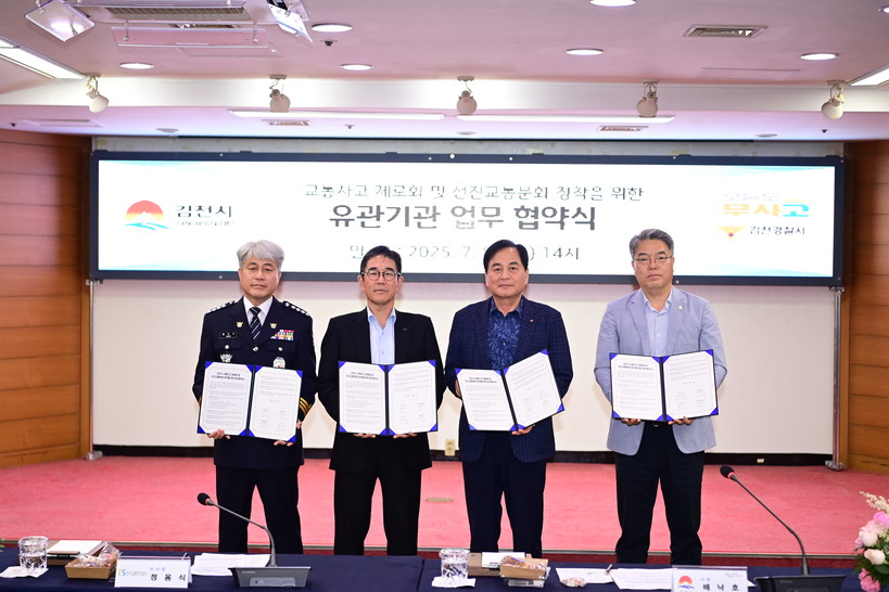 배낙호 김천시장은 “교통사고는 시민의 생명과 직결된 문제로, 이번 협약을 계기로 4개 기관이 힘을 모아 시민 모두가 안심하고 생활할 수 있는 교통 환경을 만들겠다.”라고 밝혔다.