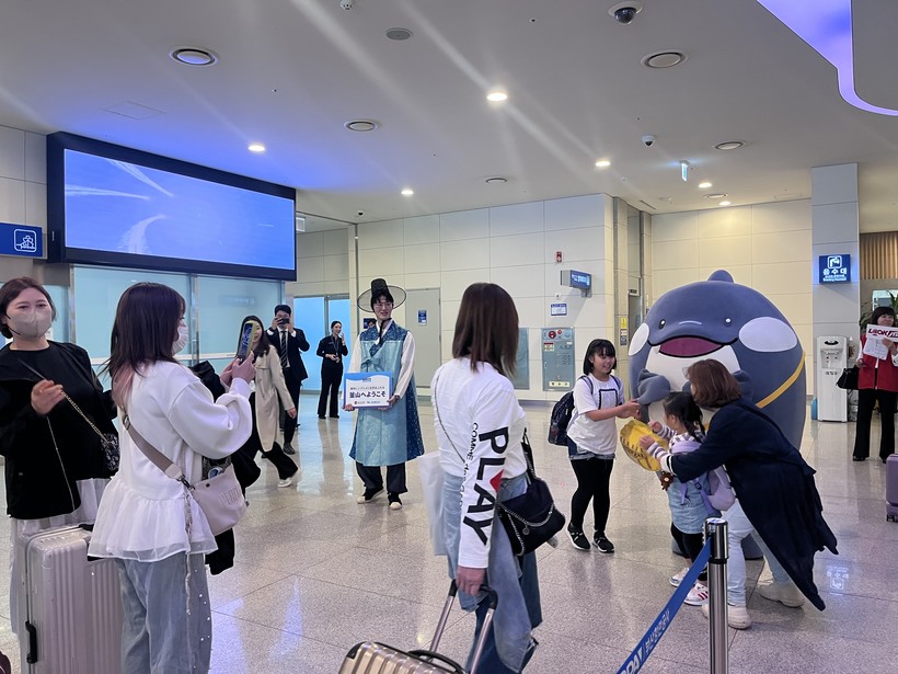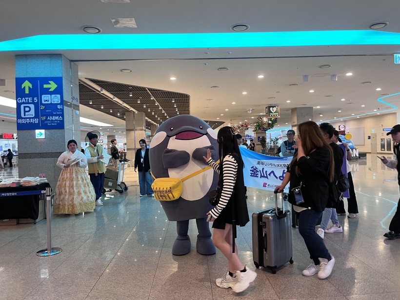 이날 일본 여행객들의 입국 시, 부산항을 상징하는 캐릭터 해범이&뿌뿌가 손님맞이 환영 세레모니와 기념 촬영을 진행하며 부산의 친근한 이미지와 여행의 설레는 분위기를 전하는 한편, 에코백·부산관광지도 등 부산항 기념품도 전달한다.