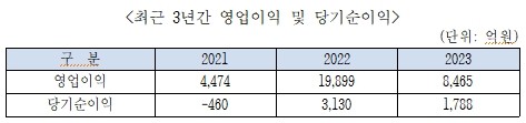 | ▲ 최근 3년간 영업이익 및 당기순이익(표=한국석유공사) |
