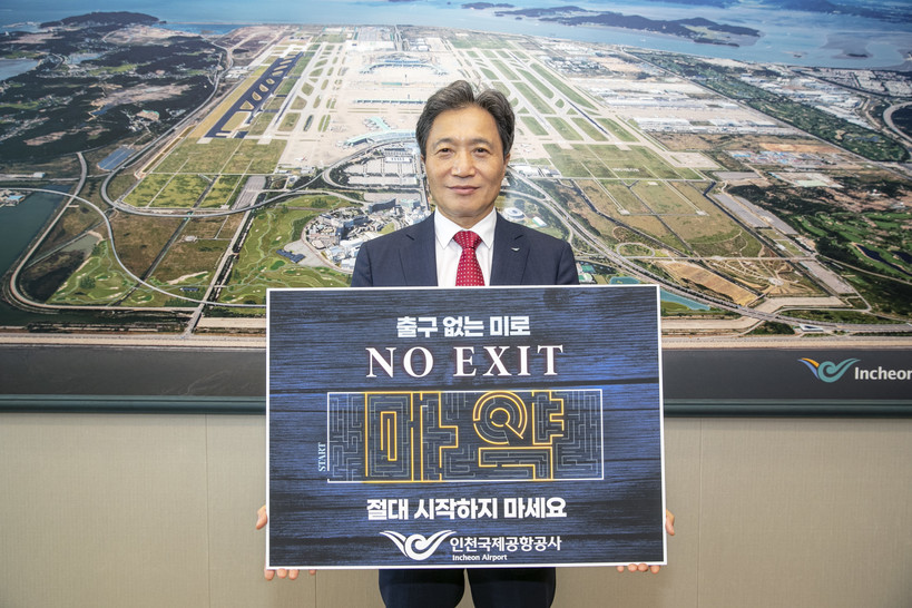 [일요주간=김영란 기자] 인천국제공항공사(사장 이학재)는 공사 이학재 사장이 마약 근절을 위한 ‘출구 없는 미로, NO EXIT’릴레이 캠페인에 동참했다고 28일 밝혔다.