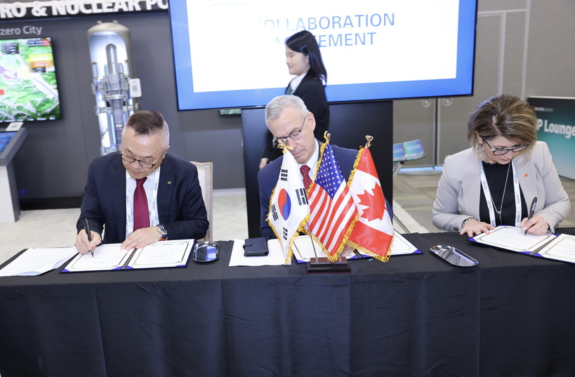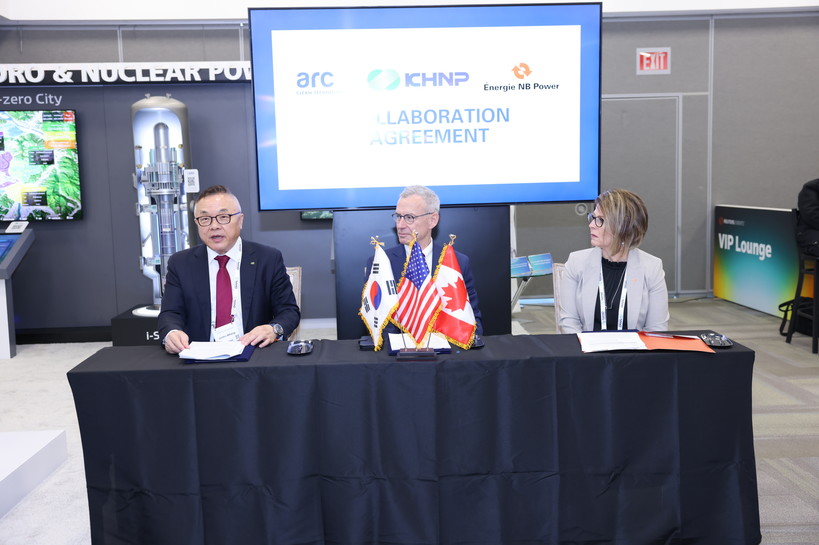 | ▲ 한수원이 1일(현지시간) 미국 애틀란타에서 캐나다 ARC, NB Power과 SMR 관련 3자 협약을 체결했다. (사진=한수원) |