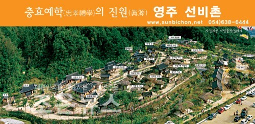 선비촌 입구에 들어서면 ‘영주 선비상’이 방문객들을 매료시킨다. 매표소를 지나 눈에 들어오는 관경은 조선시대의 군락을 온 듯한 느낌이다. 40여 채의 건물들은 대들보, 흙 마당, 장독대 등 세월의 아름다움을 느끼기에 충분하다.