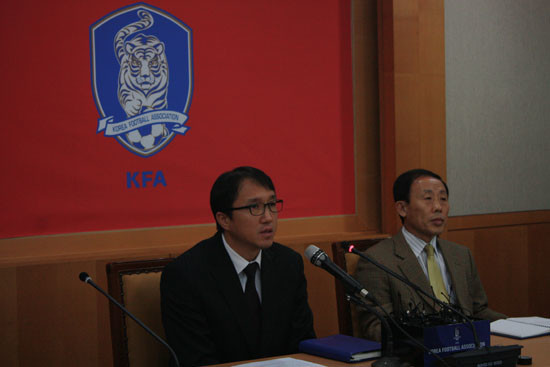 지난 8일 신문로 축구협회에서 열린 기자회견은 황보관 기술위원장과 대한축구협회 김진국 전무이사가 참석해 조광래 감독 경질에 대한 입장을 밝혔다.