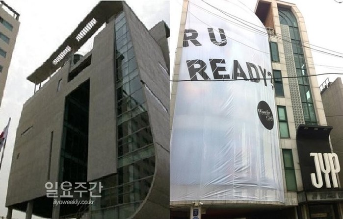 ▲ 사진출처=온라인커뮤니티사이트 캡쳐 / YG사옥(좌), JYP사옥(우)