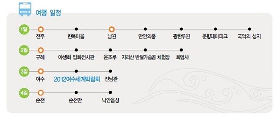지리산 반달가슴곰체험장에서반달가슴곰을 가까이서 만나면서 지리산 생태의 중요성을 느껴본다. 화엄사로 이동해 지리산 자락 절집의 향기와 고요함에 빠져드는 소중한 시간이 될 것이다.셋째 날은 2012여수세계박람회에 참가해 2050년 미래 바다여행을 떠난다.