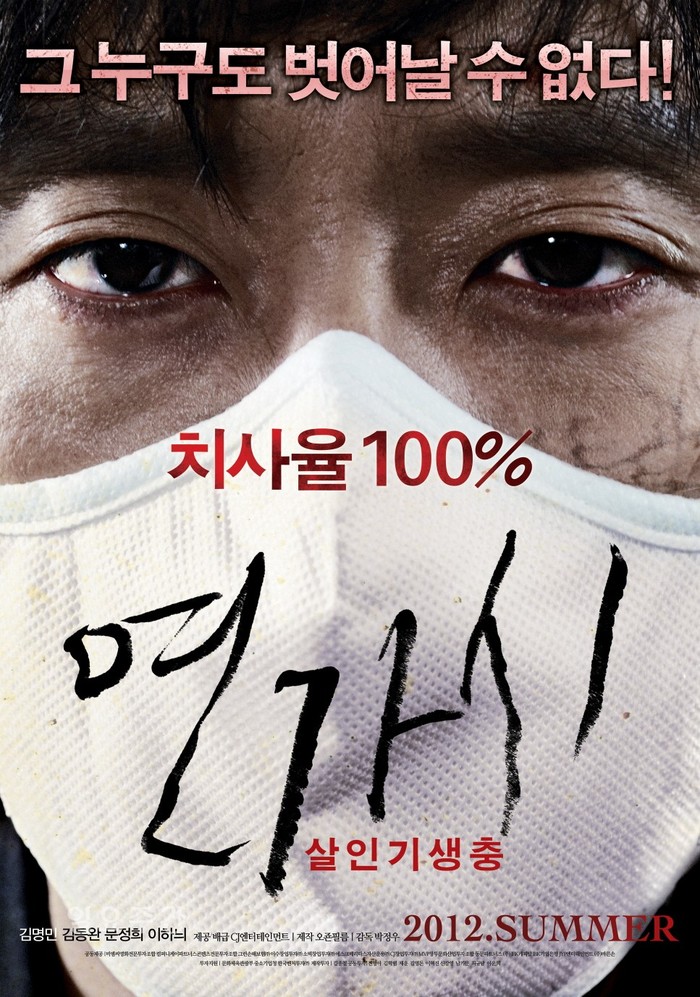 연가시에 대한 정보를 하나씩 벗겨갈 수록 수많은 궁금증을 낳고 있는 영화 <연가시>. 기생충에 의한 재난 상황이 실제로 일어날 수 있을 것 같은 현실감으로 공포와 걱정이 더해가고 있다. 이런 분위기 속에 공개한 2차 포스터는 ‘그 누구도 벗어날 수 없다!’라는 카피로 주의를 집중시킨다. 가만히 한 곳을 응시한 채 마스크를 쓰고 있는 김명민(재혁 분)의 얼굴이 클로즈업 되면서 그에게 어떤 일이 벌어졌는지에 대한 궁금증을 자극하고 있다.