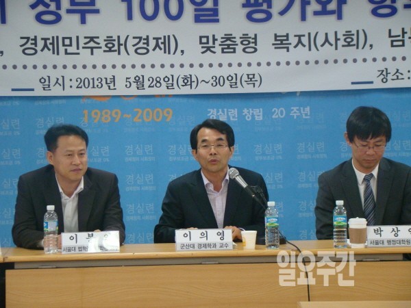 이에 경제정의실천연합은 “박근혜 정부 100일 평가”라는 제호 아래 현 정부의 전반적인 어젠다인 남북관계, 경제민주화, 맞춤형 복지 에 대한 평가토론회를 개최했다.