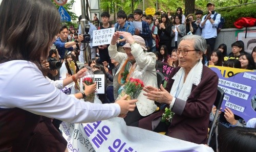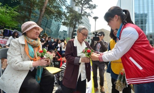 또 이날 5월 어버이날을 맞이해 집회에 참석한 청소년과 어린이들이 위안부 할머니에게 카네이션을 선물하기도 했다.