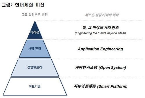 이와 함께 현대제철은 이날 선포식에서 비전을 달성하기 위한 전략방향을 ▶사업전략과 ▶정보기술 및 경영인프라 분야로 나누어 제시했다.
