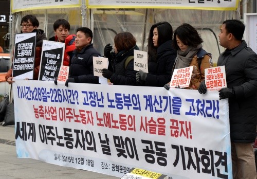 이날 농축산업 종사 이주노동자들에 대한 인권침해 사례로 거론했다. 남녀가 한방에서 혼숙하거나 월급에서 숙박비 명목으로 수십만 원을 공제하는 등의 사례가 공개됐다.