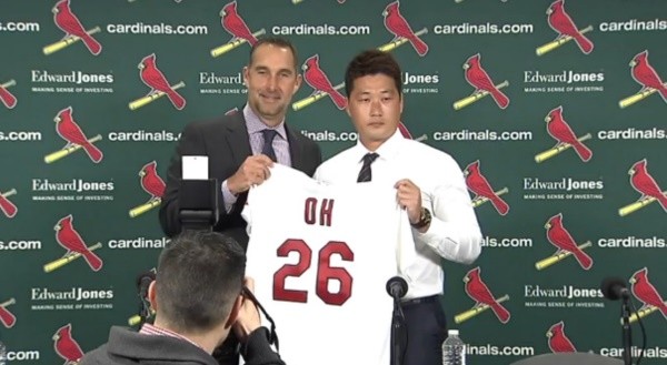 오승환은 12일(한국시간) 미국 미주리주 세인트루이스 부시 스타디움에서 공식 기자회견을 갖고 세인트루이스 카디널스 입단을 확정했다. 구단의 공식 발표는 없었으나 이날 세인트루이스 지역 매체인 '세인트루이스 포스트-디스패치'는 "오승환은 세인트루이스와 2017년 구단 옵션이 포함된 1+1년 계약을 했다"고 밝혔다. 이 매체는 여러 소식통을 인용해 "옵션을 포함 계약 총액은 500만 달러(약 60억 원) 정도 규모"라고 전했다.