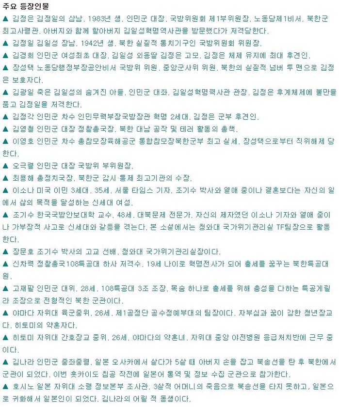 전 세계 정보망을 주무르는 CIA도 가장 비밀스런 조직인 알 카에다의 동선을 일일이 파악하기란 어려웠다. 그들이 왜 북한 특수부대 고위인사를 만날까? 미 CIA는 곤혹스러웠다. 지금 북한과 전쟁 중 그들이 왜 또 알 카에다 일급 수배자 실력자를 만날까? 랭글리본부의 전등이 24시간 불을 밝혔다.